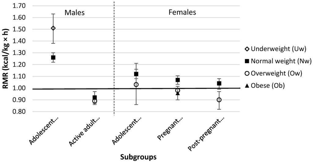 - Melzer, K.; Schutz, Y.; Kayser, B. Normalization of basal metabolic rate for differences in body weight in pregnant women. Eur. J. Obstet. Gynecol. Reprod. Biol. 2011, 159, 480–481. [Google Scholar] [CrossRef] [PubMed]