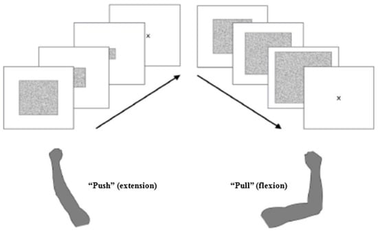 The approach-avoidance task (AAT) has been developed [28] as an experimental paradigm that tests associative processes that are not influenced by attention, memory, interpretation, or strategic control [29]. The AAT is a behavioral reaction time task that assesses approach and avoidance motivational processes by instructing participants to respond to cues (pictures) by either “pulling” these towards themselves or “pushing” them away, while responding to an irrelevant feature of the stimulus (e.g., the presented picture format as landscape vs. portrait, and not according to the picture content itself). The amount of time required to initiate these actions is the dependent variable. Such responses can be captured by means of motor movements of the forearm; unpleasant cues are pushed away from oneself faster; pleasant cues are pulled faster—interfering with the explicit instruction to respond to an irrelevant feature of the stimulus. Thus, a close connection between the valence of stimuli and the herewith-associated motor reaction exists. The AAT uses this connection, in order to assess the association between stimuli and behavioral responses.