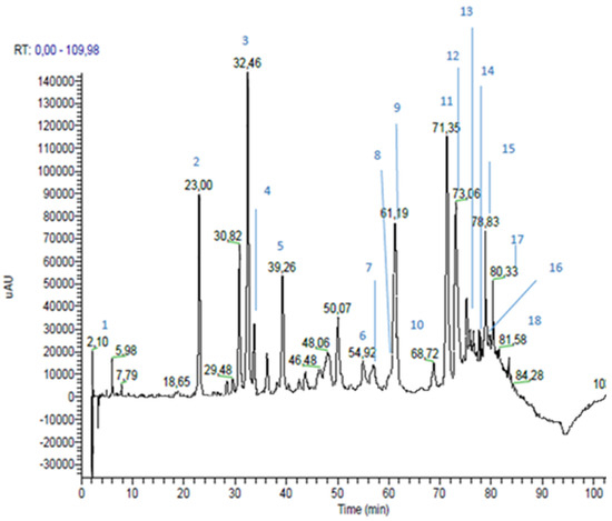 Brown propolis extract chromatogram, registered at 330 nm.