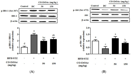 3.4. The Effect of CO-EtOAc on the Regulation of Insulin Signaling