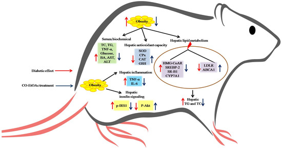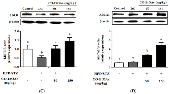 3.6. The Effect of CO-EtOAc on Hepatic Cholesterol levels and Gene Expression