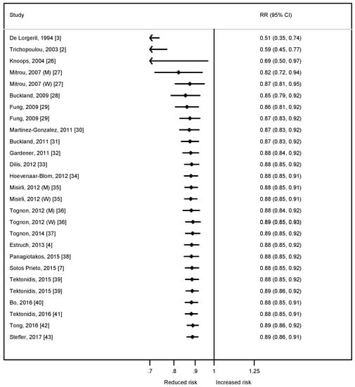 - Kastorini, C.M.; Milionis, H.J.; Esposito, K.; Giugliano, D.; Goudevenos, J.A.; Panagiotakos, D.B. The effect of Mediterranean diet on metabolic syndrome and its components: A meta-analysis of 50 studies and 534,906 individuals. J. Am. Coll. Cardiol. 2011, 57, 1299–1313. [Google Scholar] [CrossRef] [PubMed]