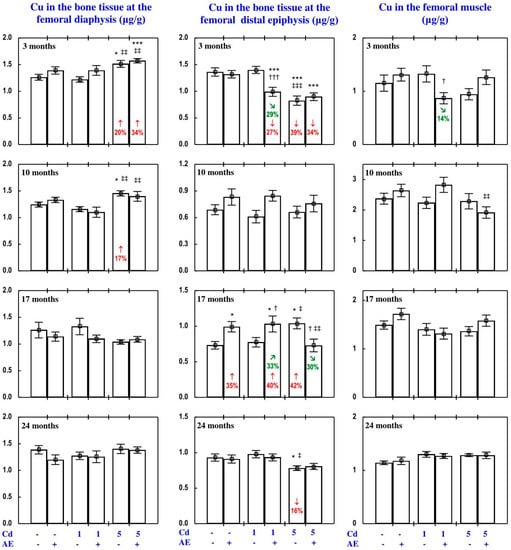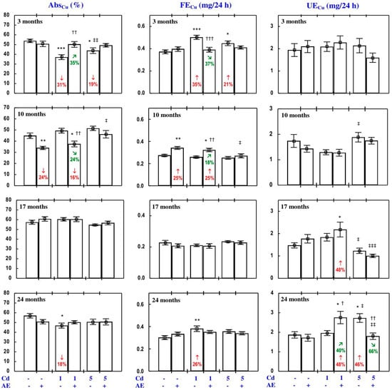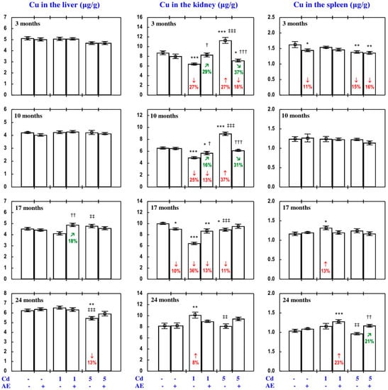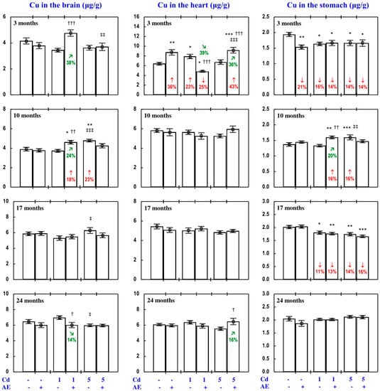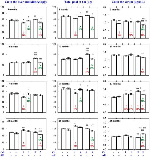 3.3. Effect of AE on the Body Status of Cu under Exposure to Cd