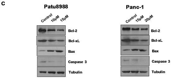 Human pancreatic cancer cell lines Patu8988 and Panc-1 were cultured in Dulbecco’s Modified Eagle Medium (DMEM) supplemented with 10% fetal bovine serum and 1% penicillin and streptomycin. The anti-Cdc20 antibody was purchased from Abcam Company (Cambridge, MA, USA). The anti-p21, anti-B-cell lymphoma 2 (Bcl-2), anti-B-cell lymphoma-extra large (Bcl-xL), anti-Bax, anti-caspase-3 antibodies were obtained from Cell Signaling Technology (Danvers, MA, USA). All secondary antibodies were purchased from Thermo Scientific (Waltham, MA, USA). The anti-β-actin, anti-Tubulin, and 3-(4,5-dimethyl-2-thiazolyl)-2,5-diphenyl-2-H-tetrazolium bromide (MTT) were purchased from Sigma-Aldrich (St. Louis, MO, USA). Inhibitor of APC/C (Apcin), a Cdc20 inhibitor, was purchased from BostonBiochem (Boston, MA, USA). Lipofectamine 2000 was purchased from Invitrogen (Waltham, MA, USA).