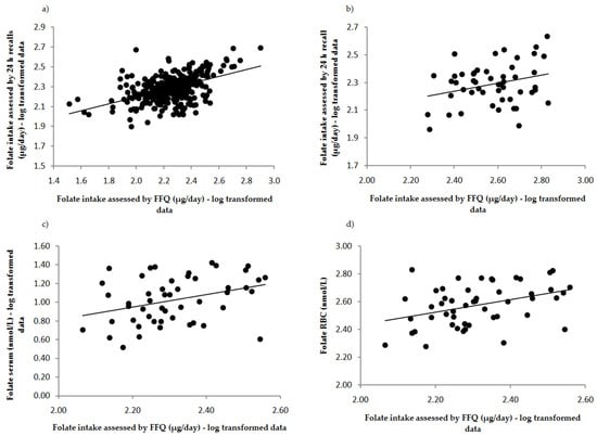 - Barić, I.C.; Šatalić, Z.; Keser, I.; Cecić, I.; Sučić, M. Validation of the folate food frequency questionnaire with serum and erythrocyte folate and plasma homocysteine. Int. J. Food Sci. Nutr. 2009, 60, 10–18. [Google Scholar] [CrossRef] [PubMed]