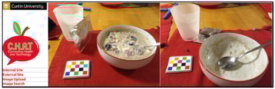 Before beginning their baseline image-based 4-day food record, all participants received a 30-minute interactive training session by a single researcher who conducted individual or small group training sessions using PowerPoint slides on how to connect the iPod to the Wi-Fi and how to use the mFR app. Training sessions were held at Curtin University in a room with Wi-Fi access. The inclusion of a fiducial marker (a checkerboard pattern of known shape, size and colour) in all food record images gave a known reference of dimension and markings to assist with food identification and portion size estimation []. During training, participants were able to practice taking before and after images using food models. Collected food record images were automatically uploaded from the iPod touch, when in Wi-Fi range. The iPods were coded with the participant ID ensuring each image was tagged with the participant ID, date and time of eating occasion. Participant ID was used to identify the images on the server. The server was accessible by researchers only via password.