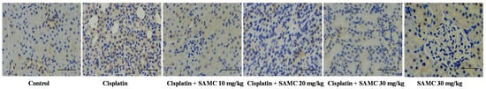 Effect of SAMC on nuclear factor NF-κB expression in cisplatin-induced renal injury in rats. Bars indicate 50 μm.