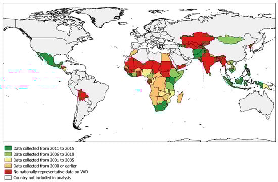 Wirth, J.P.; Petry, N.; Tanumihardjo, S.A.; Rogers, L.M.; McLean, E.; Greig, A.; Garrett, G.S.; Klemm, R.D.W.; Rohner, F. Vitamin A Supplementation Programs and Country-Level Evidence of Vitamin A Deficiency. Nutrients 2017, 9, 190. https://doi.org/10.3390/nu9030190