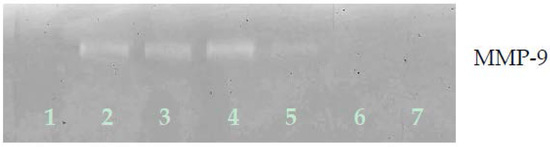 Zymography demonstrated only MMP-9 expression by ovarian A-2780 cells, which EPQ inhibited in a dose-dependent fashion, with virtual total block at 250 μg/mL concentration, as shown in Figure 7.