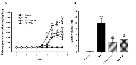 3.2. Effect of PAL on Plasma Parameters and Renal Function