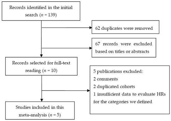 - Stroup, D.F.; Berlin, J.A.; Morton, S.C.; Olkin, I.; Williamson, G.D.; Rennie, D.; Moher, D.; Becker, B.J.; Sipe, T.A.; Thacker, S.B. Meta-analysis of observational studies in epidemiology: A proposal for reporting. Meta-analysis of Observational Studies in Epidemiology (MOOSE) group. JAMA 2000, 283, 2008–2012. [Google Scholar] [CrossRef] [PubMed]