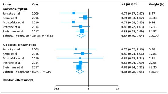 | Mostofsky 2010 [17] | Cohort study | Women with no history of diabetes, HF, and MI | 419/31,823 | Food frequency questionnaire | ICD-9 and 10 codes | Sweden | 9 | Age, dietary energy, education, BMI, physical activity, smoking, drinking, living status, postmenopausal hormone use, family history of MI, and hypertension, and high cholesterol |