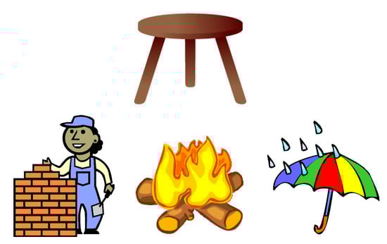 The three-legged chair compared to the body building foods (bricks), the energy foods (fire), and the protective foods (umbrella).