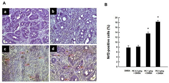 3.4. PE Induced Nrf2 Expression during DMBA Mammary Tumorigenesis