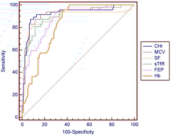 14]. Low SI and sTfR and increased UIBC may appear at this stage. With the progress of the condition, a more severe microcytic anemia eventually comes, with low CHr, MCV, MCHC, CH, and SF; and high FEP, UIBC, and sTfR. As a young stage red blood cell, with a short lifespan of only 24 to 48 h [