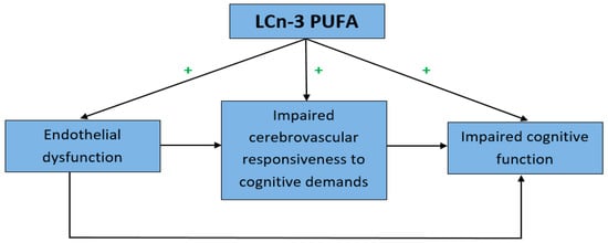 Based on the reviewed literature, LCn-3 PUFA supplementation appears to benefit both endothelial vasodilator function and cognition, although the former requires further confirmation. Sinn and Howe hypothesized that LCn-3 PUFA supplementation can enhance cognitive function by acting on endothelial cells to influence vasodilatation, thereby boosting cerebral perfusion [10]. In this section of the review, we want to consider evidence for a relationship between vasodilator function and cognition and if this relationship might be partially mediated by effects on CBF.
