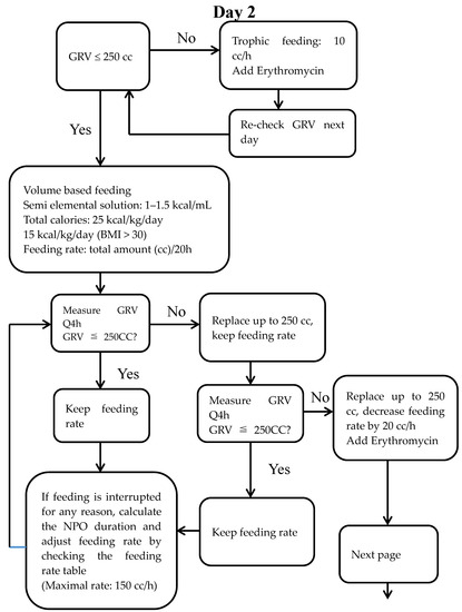 - Heyland, D.K.; Murch, L.; Cahill, N.; McCall, M.; Muscedere, J.; Stelfox, H.T.; Bray, T.; Tanguay, T.; Jiang, X.; Day, A.G. Enhanced protein-energy provision via the enteral route feeding protocol in critically ill patients: Results of a cluster randomized trial. Crit. Care Med. 2013, 41, 2743–2753. [Google Scholar] [CrossRef] [PubMed]