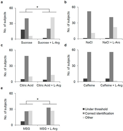 3.2. Effect of l-Arg Supplementation on Perception of Five Taste Qualities