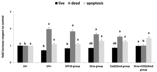 - Gasparrini, M.; Forbes-Hernandez, T.Y.; Afrin, S.; Alvarez-Suarez, J.M.; Gonzàlez-Paramàs, A.M.; Santos-Buelga, C.; Bompadre, S.; Quiles, J.L.; Mezzetti, B.; Giampieri, F. A Pilot Study of the Photoprotective Effects of Strawberry-Based Cosmetic Formulations on Human Dermal Fibroblasts. Int. J. Mol. Sci. 2015, 16, 17870–17884. [Google Scholar] [CrossRef] [PubMed]