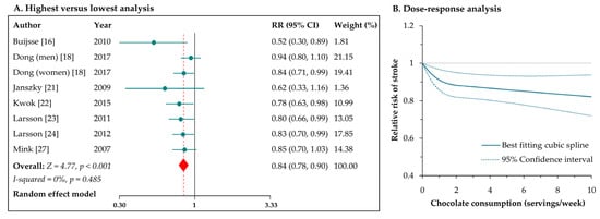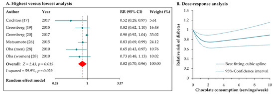 Yuan, S.; Li, X.; Jin, Y.; Lu, J. Chocolate Consumption and Risk of Coronary Heart Disease, Stroke, and Diabetes: A Meta-Analysis of Prospective Studies. Nutrients 2017, 9, 688. https://doi.org/10.3390/nu9070688