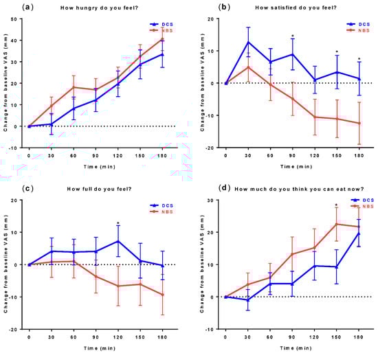 - Flint, A.; Raben, A.; Blundell, J.E.; Astrup, A. Reproducibility, power and validity of visual analogue scales in assessment of appetite sensations in single test meal studies. Int. J. Obes. Relat. Metab. Disord. 2000, 24, 38–48. [Google Scholar] [CrossRef] [PubMed]