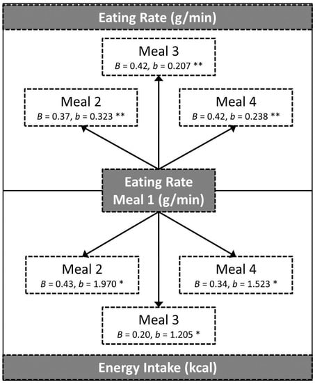 3.3. Eating Rate at One Meal as a Predictor of Eating Behaviours at Subsequent Meals