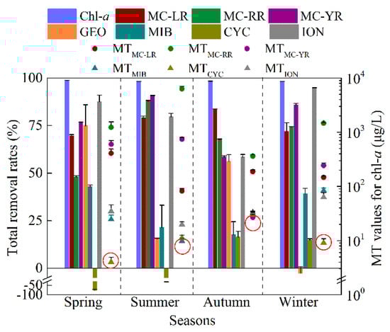 2.3.5. Total Removal Rates of Chlorophyll-a and the Metabolites