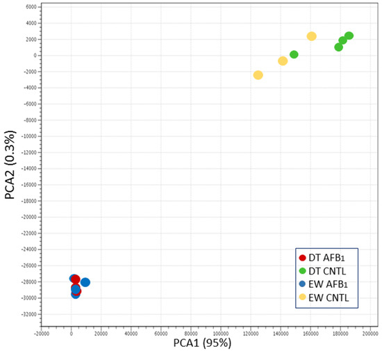 61]. Unique response in the EW birds was seen in genes that negatively regulate cellular processes, components of the extracellular matrix and accumulation of coagulation factors. DT birds showed greater up regulation of genes responding to inflammation, which was likely due to the reduced ability to detoxify AFBO. Dis-regulation of extracellular matrix proteins is a resulting effect of chronic liver injury [