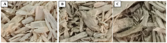 Typical samples observed under the sunlight. (A) negative control; (B) inoculated sample after incubation for seven days at 23 °C and 82% humidity; (C) inoculated sample after incubation for seven days at 30 °C and 88% humidity.