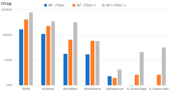 | Aspergillus section Flavi | 9.9 × 102 | 3.2 × 104 | 6.2 × 103 |