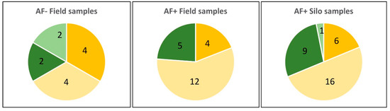 | AF− Field Samples (n = 24) | AF+ Field Samples (n = 7) | AF+ Silo Samples (n = 12) | |