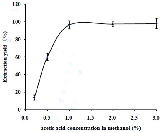 Effects of different acetic acid concentrations in methanol (0.2–3.0%) on the TTX extraction yield.