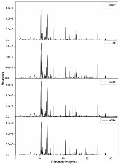 The typical total ion chromatograms (TICs) of the two groups of strain.