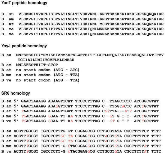 2.9. Homologues of the yonT, yoyJ and sr6 Are Present in Some Other Bacillus Species