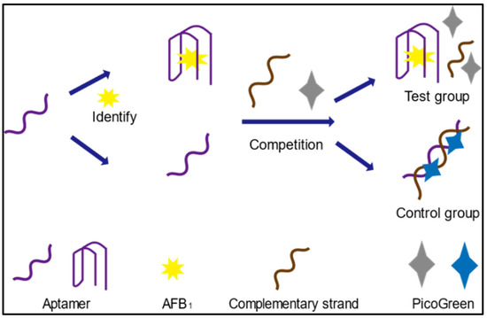 Schematic illustration of fluorescent detection of AFB1 by a label-free aptasensor.