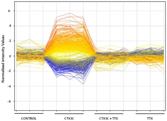 Rubiolo, J.A.; Vale, C.; Boente-Juncal, A.; Hirama, M.; Yamashita, S.; Camiña, M.; Vieytes, M.R.; Botana, L.M. Transcriptomic Analysis of Ciguatoxin-Induced Changes in Gene Expression in Primary Cultures of Mice Cortical Neurons. Toxins 2018, 10, 192. https://doi.org/10.3390/toxins10050192