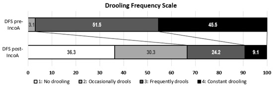 Drooling Frequency Scale score before and after the administration of inco-A.