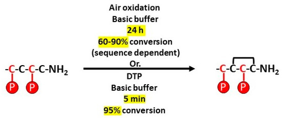 Comparison of disulfide bond formation between free cysteine residues by using air oxidation or DTP. P stands for usual cysteine lateral chain protective groups.