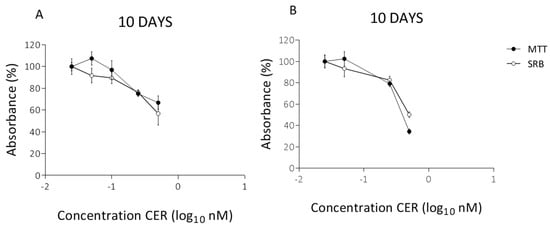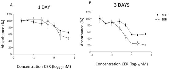 2.1. Determination of Subacute Concentrations of CER on Caco-2 and HepG2 Cells