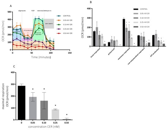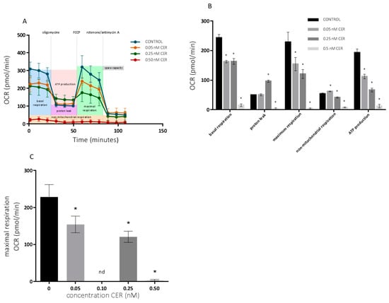 2.2. Long-Term Effects of Cereulide on Mitochondrial Respiration of Caco-2 and HepG2 Cells