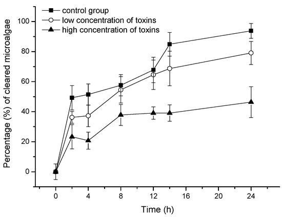 2.2. Effect of OA and DTX1 on the Feeding Ability of Mussels