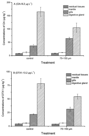 5.5.3. Esterification and Distribution of OA and DTX1 in Mussels