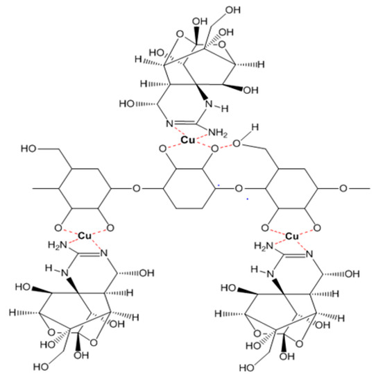 The interaction model of TTX and EPS from Leuconostoc mesenteroides N3 and Lactobacillus rhamnosus PN04 through Cu bridges.