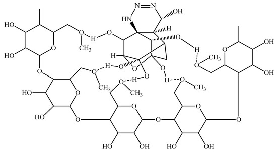 In the cases of the EPS of Leuconostoc mesenteroides and Lactobacillus rhamnosus, the EPS showed their TTX detoxification capacity when combined with copper ion. EPS is a long chain polymer while tetrodotoxin contains many strong functional groups in a compact structure. In the presence of copper, both EPS structures of Leuconostoc mesenteroides and Lactobacillus rhamnosus contain functional groups (O–H, N–H) that interact with copper forming a complexly compact structure that can bind to TTX through many hydrogen bonds (Figure 5), then TTX was not enough amount to cause TTX toxicity in mice. According to the FTIR result, the EPS of Lactobacillus plantarum was methylated. This group makes the electric density in oxygen become more negative in charge allowing them to interact with hydrogen of the hydroxyl groups of TTX (Figure 6). These interactions might happen faster than the interaction of copper with nitrogen in nitro moiety of TTX leading to TTX detoxification without the presence of copper. Further investigations must be conducted to optimize the way EPS originated in many sources in TTX detoxification.