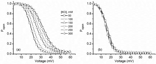 - Islas, L.D.; Sigworth, F.J. Electrostatics and the gating pore of Shaker potassium channels. J. Gen. Physiol. 2001, 117, 69–89. [Google Scholar] [CrossRef] [PubMed]
