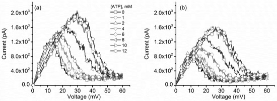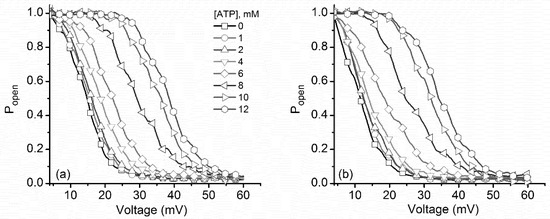 2.3. ATP Binding to Lysenin Channels Modulates the Voltage-Induced Gating and Affects Both the Inactivation and Reactivation Pathways