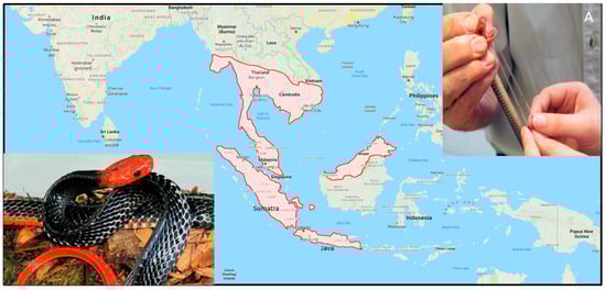 - Das, I. A Field Guide to the Reptiles of South-East Asia; New Holland Publishers: London, UK, 2010; p. 376. [Google Scholar]