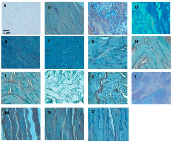 - Cooper, B.J.; Valentine, B.A. Muscle and tendon. In Jubb, Kennedy and Palmer’s Pathology of Domestic Animals, 6th ed.; Maxie, M.G., Ed.; Elsevier: New York, NY, USA, 2015; Volume 1, pp. 164–249. [Google Scholar]