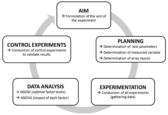 - Klein, B. Versuchsplanung—DoE Einführung in die Taguchi/Shainin-Methodik, 4th ed.; De Gruyter: München, Germany, 2014; p. XIV. [Google Scholar]