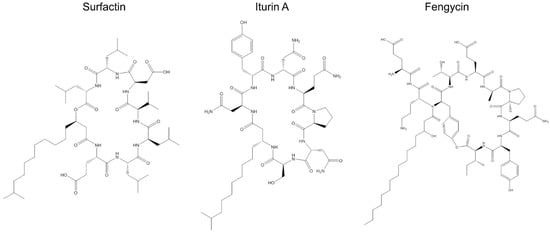 2.2. Surfactins, Fengycins, and Iturins in Bacillus Species